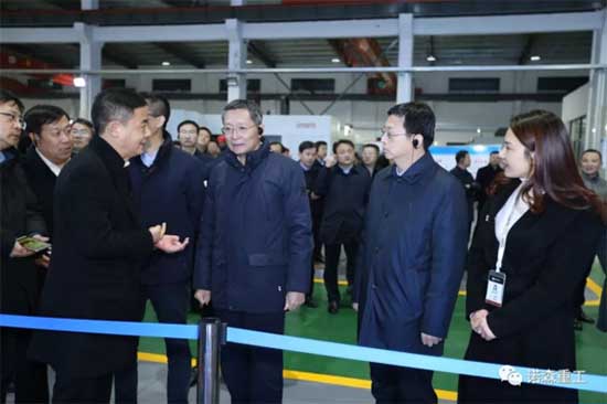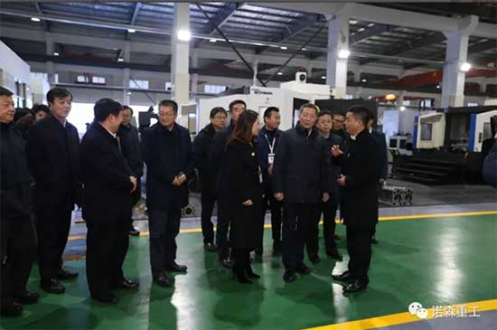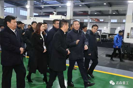 2019年12月18日,鹽城市委書記戴源、市長(zhǎng)曹路寶及副市長(zhǎng)、濱??h委書記孫軼、縣長(zhǎng)劉永軒等領(lǐng)導(dǎo)一行蒞臨江蘇諾森重工有限公司參觀考察企業(yè)發(fā)展情況。諾森重工董事長(zhǎng)劉春梅,總經(jīng)理王海濤全程陪同視察。
